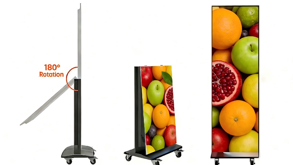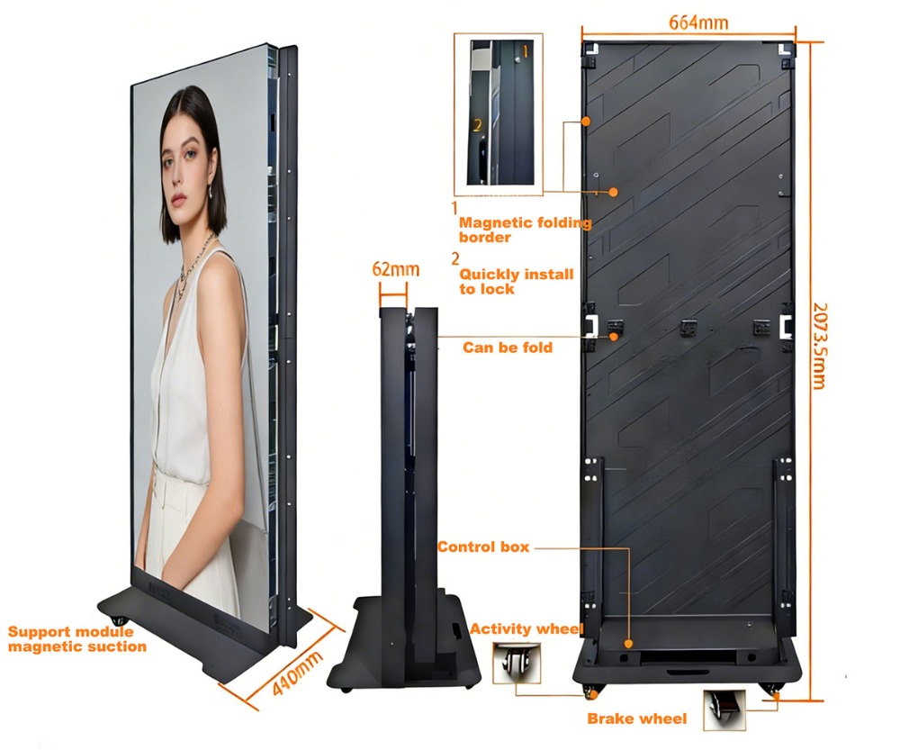 Fold,Transform. Double your exposure. Our LED poster screen instantly becomes a two-sided advertising machine — two-sided impact, single investment.