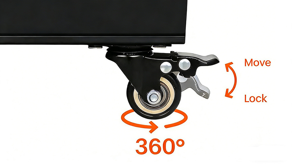 Move freely. Rotate with ease. With four swivel wheels built into its base, this LED poster screen glides effortlessly and can be positioned exactly where you need it.