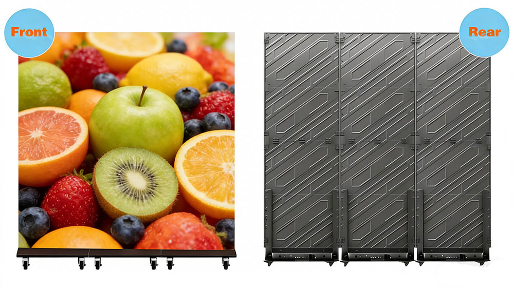 This foldable LED screen offers superior portability and display flexibility. It folds to 50% of its volume for efficient handling, while its dual-sided design supports both independent content per side or a unified large image when expanded.