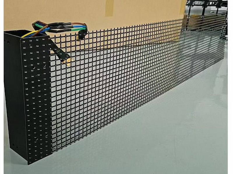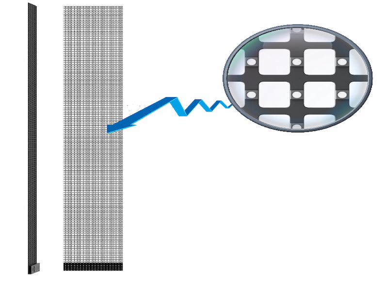 Os espaços entre as lâmpadas permitem a passagem da luz, mantendo a transparência da tela.